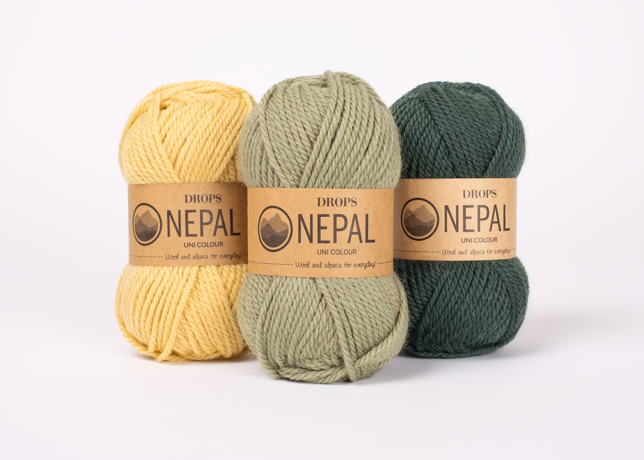 Garnet är spunnet av 3 trådar vilket ger en spännande, rustik och vacker maskbild. DROPS Nepal är en lättstickad/virkad kvalitet som också passar utmärkt att tova. Plaggen får efter tovning en jämn och mjuk yta.