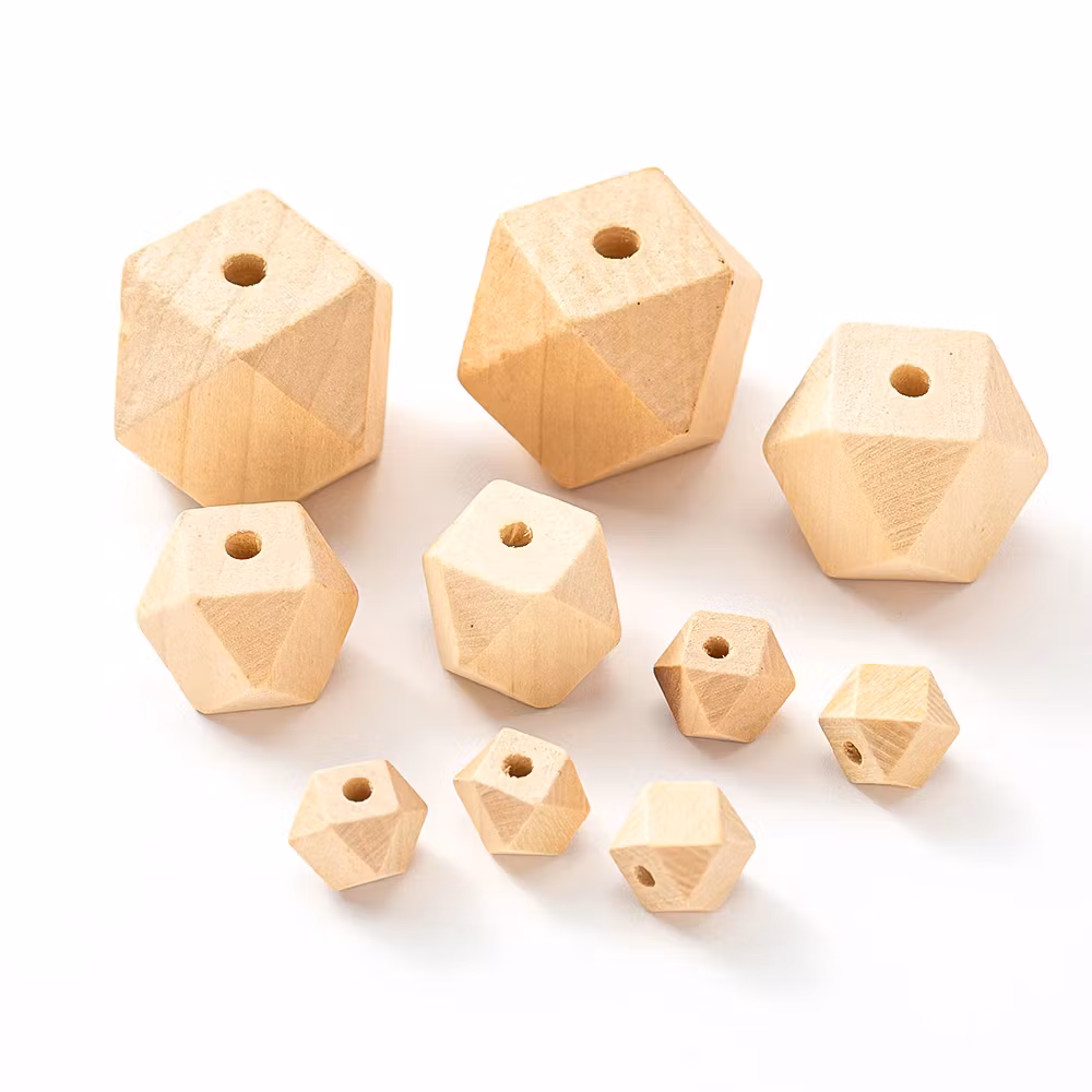 Geometriska kantiga träpärlor. Tydliga ådringar som ger härlig effekt i dina kreationer!